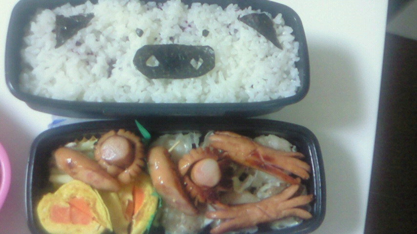 数年後には子供にもキャラ弁とか作らないとなんだろうなぁ…って思いながら料理のサイトを最近見続けてたらブルーので練習?しようという気持ちと、開けた時の楽しみを持ってもらおうと…頑張ってますw