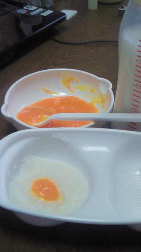 離乳食っちゅーやつです。やーーらかいお粥を裏ごししてまふ。